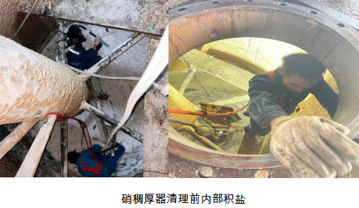 本次檢修涉及機修項目10項,電儀7項,生產(chǎn)5項,全線合計檢修項目23項。本次檢修重點項目涉及蒸發(fā)濃縮硝鹽列管清垢,硝輸送皮帶架子更換和鹽水沫除塵技改、兩級壓縮機葉輪檢查,硝稠厚器底部清理積鹽屬于密閉空間,同時高溫天氣內(nèi)部清理作業(yè)安全風險高,容易造成人員缺氧中暑等。