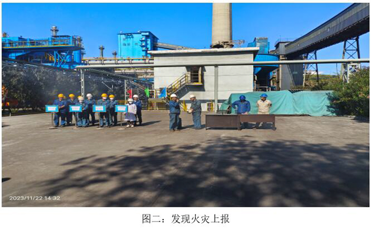 本次演練模擬2023年11月22日10:00分,焦化脫硫脫硝巡檢員發(fā)現(xiàn)焦化6號(hào)門因其他公司職工在外抽煙后,煙頭未熄滅直接丟入綠化帶,將綠化帶內(nèi)干雜草點(diǎn)燃,發(fā)生火災(zāi),后藍(lán)鼎公司現(xiàn)場(chǎng)巡檢員立即上報(bào)并按領(lǐng)導(dǎo)指示警戒、滅火、救治傷員、現(xiàn)場(chǎng)清理、結(jié)果匯報(bào)等措施消除火災(zāi)。